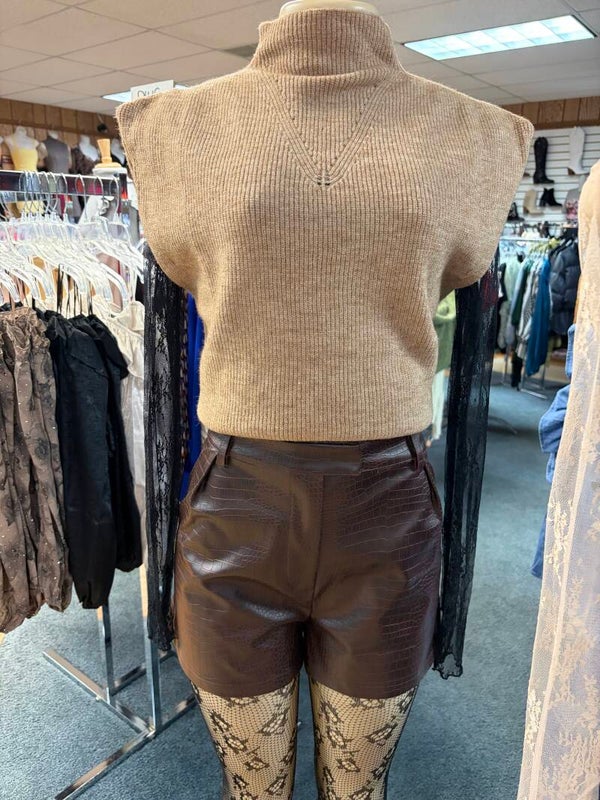 Two tone Ribbed knit sweater vest- mock neck - sleeves
